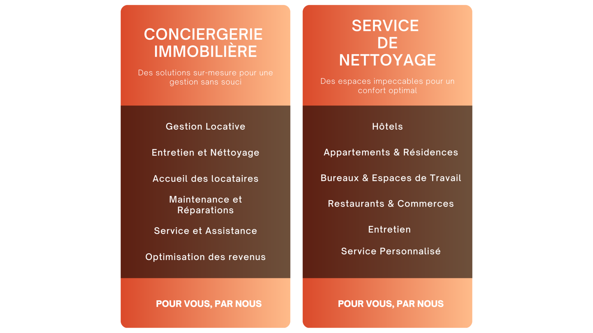 Nous vous offrons une gestion complète et personnalisée de vos biens immobiliers, incluant le nettoyage, l’optimisation de vos annonces et des stratégies marketing efficaces pour maximiser votre visibilité.